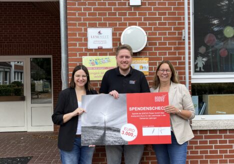 Die ENOVA Power GmbH hat im Zuge des Windparkvorhabens in Uplengen 8.000 Euro an die Gemeinden Firrel, Uplengen und Schwerinsdorf gespendet. Das Geld kommt unterschiedlichen gemeinnützigen Zwecken in den Gemeinden zugute. ENOVA plant im Windpark Uplengen den Bau von drei Siemens Gamesa Anlagen vom Typ SG 6.6-155. Da sowohl die Gemeinde Uplengen als auch die…